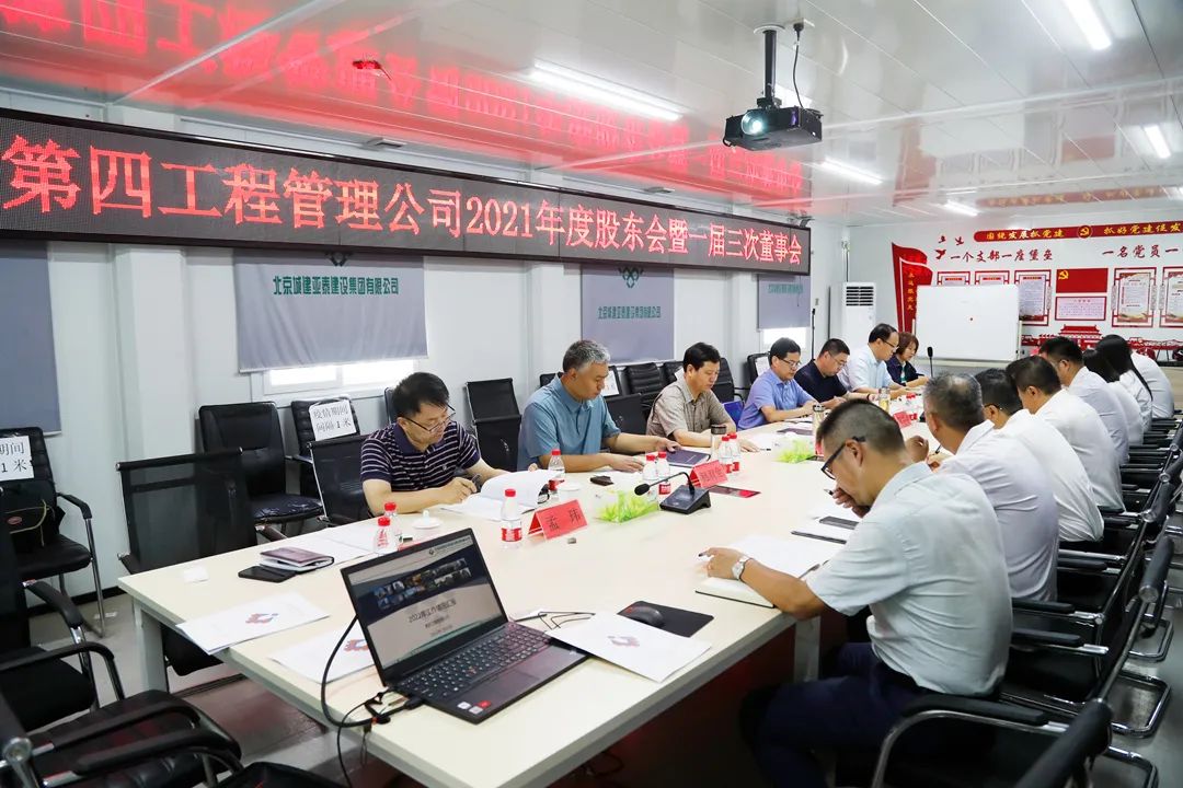 集团公司党委书记兼第四工程管理公司董事长潘寿林主持召开第四工程管理公司2021年度股东会暨一届三次董事会。在完成各项既定议案后,潘寿林主持召开管理公司施工生产动员会。集团公司副总经理兼第四工程管理公司经理刘小杰对目前管理公司在施工程建设情况及已竣未结工程结算情况进行了汇报。集团公司各系统领导就人才优化、施工管理、经营结算、资金管控、作风巡察及审计问题整改等工作提出意见和要求。