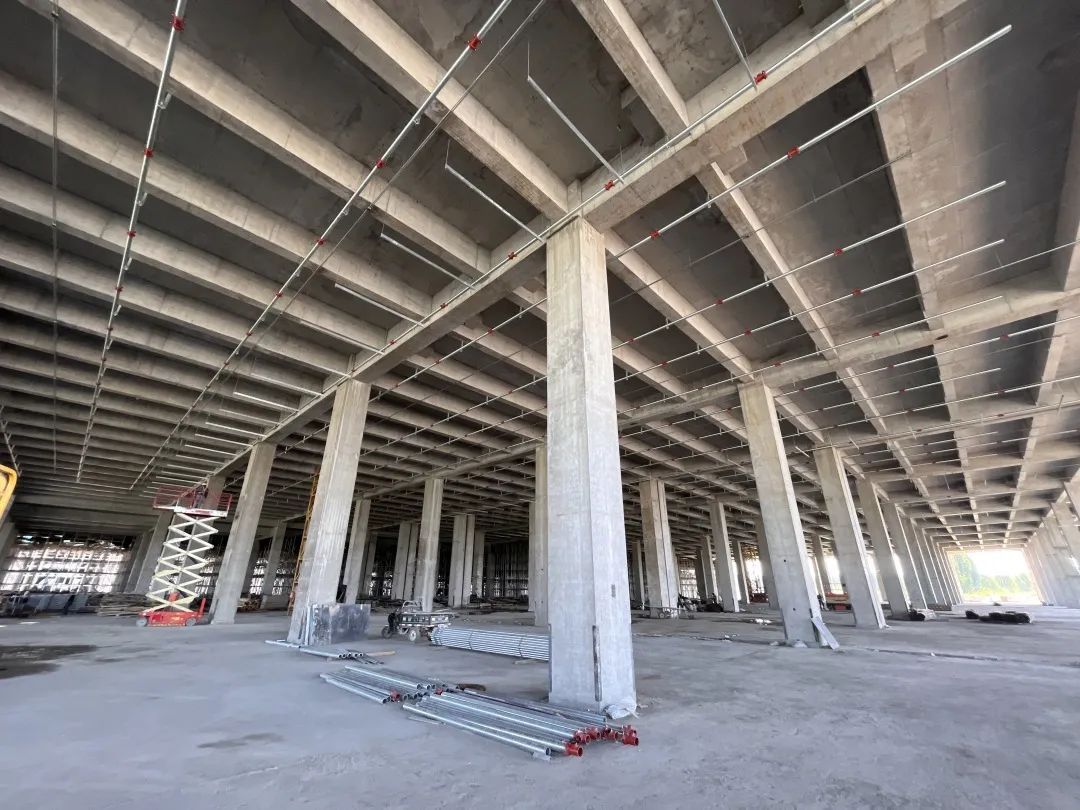 京东固安智能产业园一期工程位于廊坊固安县大清河产业园区内,项目总体规划二期,共占地约720余亩。本次开发为一期项目,总建筑面积约94870.7平方米,目前1#库主体结构封顶,二次结构完成80%,2#库、3#库主体结构框架梁浇筑完成95%,预计7月22日实现封顶。