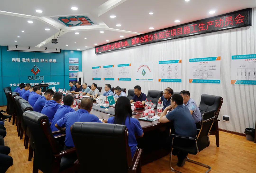 7月20日,集团公司董事长曹国章带领副总经理赵双全、总经济师孟玮、副总经理袁亮、总法律顾问魏世彤、审计稽查委员会主任刘长喜等领导来到第二工程管理公司京东固安智能产业园项目调研,并参加第二工程管理公司2021年第一次股东会暨一届二次董事会及京东固安项目“大干100天”施工生产动员会。