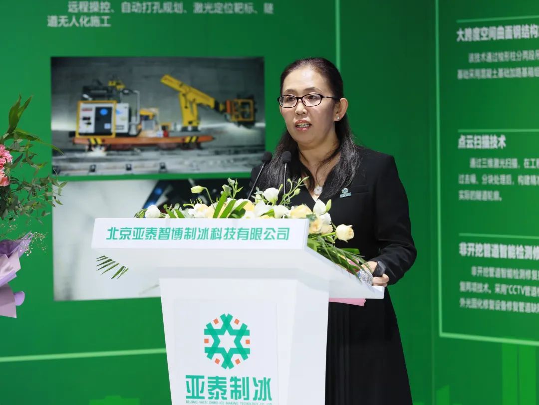 集团公司副总工程师、国家速滑馆制冰项目经理李燕敏发布二氧化碳跨临界直冷制冰建造技术。