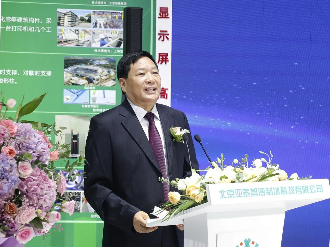 北京市住建委副主任丁胜等领导共同为北京腾博会智博制冰科技有限公司揭幕。