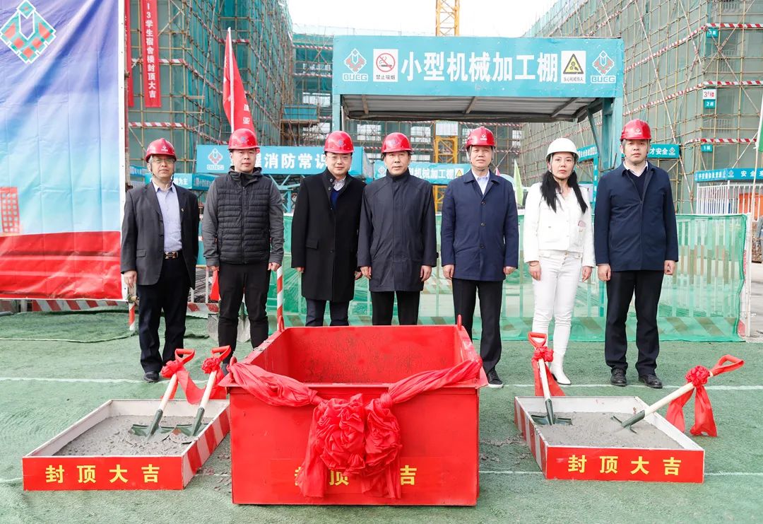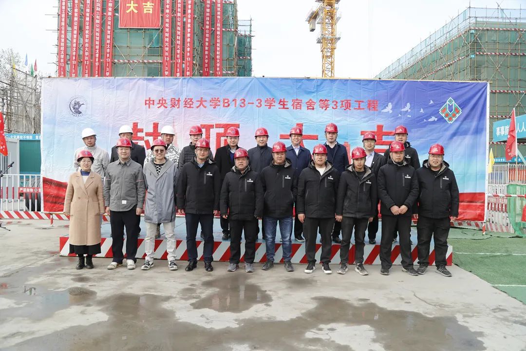 3月13日上午,由集团公司承担施工的中央财经大学沙河校区B13-3学生宿舍楼工程举行封顶仪式。建设方中央财经大学副校长范卫宏、基建处处长高杰、副处长李志鹏、监理方北京华达建业公司工程部经理赵峥峥、集团公司党委书记潘寿林、副总经理刘小杰等领导以及第四工程管理公司项目管理人员、劳务人员代表参加仪式。