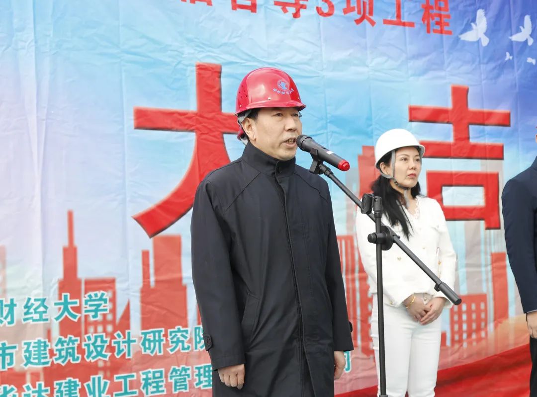 ▲ 中央财经大学副校长范卫宏宣布宿舍楼工程正式封顶。