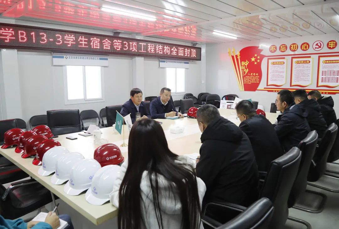 集团公司党委书记潘寿林在致辞中表示,B13-3学生宿舍楼工程是腾博会集团继中央财经大学沙河校区宿舍楼一期工程、物业用房及职工宿舍工程、锅炉房工程和图书馆工程后,承接的又一项中财大校园工程,感谢校方一直以来的信任和对工程建设给予的大力支持。该项目被列为腾博会集团年度重点工程,由集团主要领导挂点督办,此次项目如期封顶,是参建各方共同努力的结果,也标志着工程建设进入新的阶段,下一步,城建腾博会集团将认真履行施工主体责任,推进后续工程建设,全力打造平安工程、精品工程。